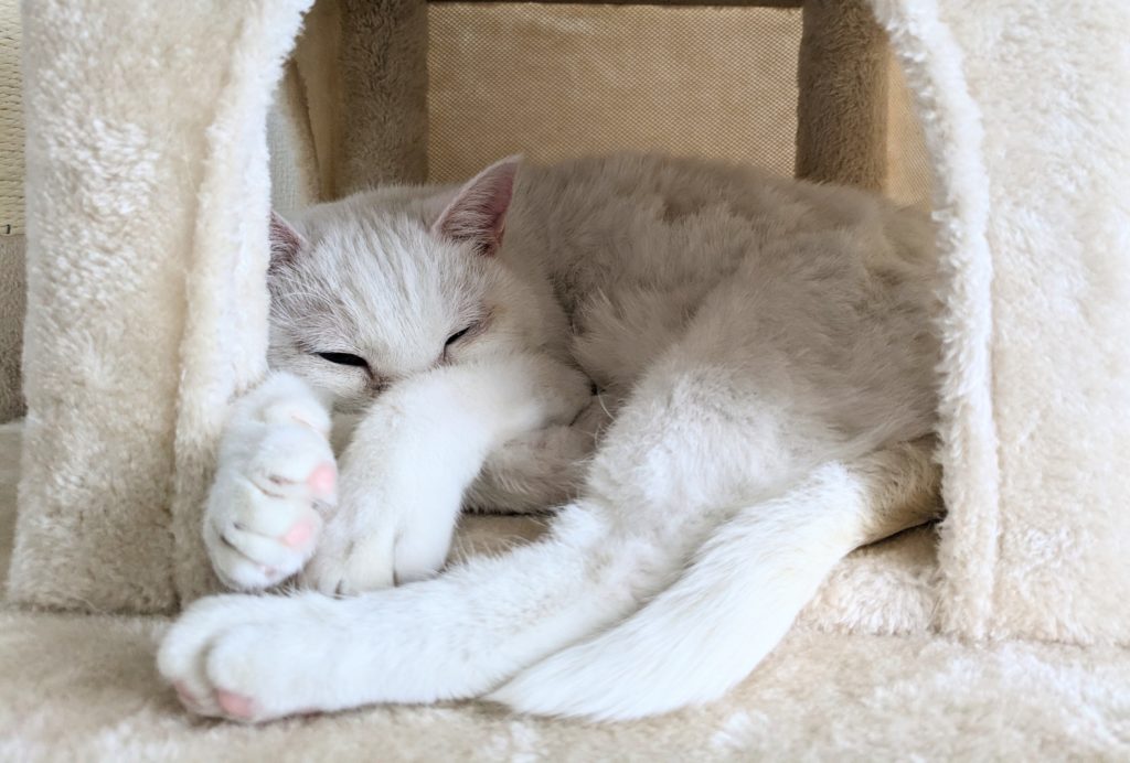 すぐにリラックス状態には入ってくれましたが、これでも最初はハウスに手を触れてレイキを流した直後は「ニャんと!?」となっていますw